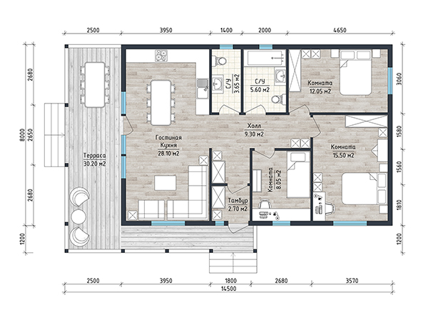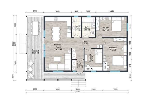 Обвязка: | Брусовая 150х150 мм (не строганый брус естественной влажности); |