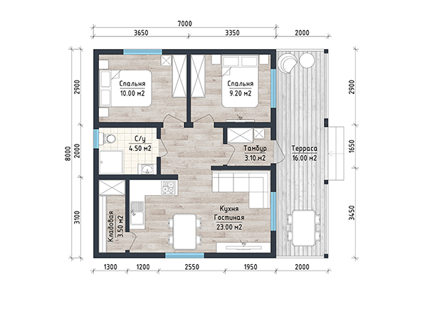 Чистовой пол: | шпунтованная доска камерной сушки 36 мм, или фанера по обрешетке; |