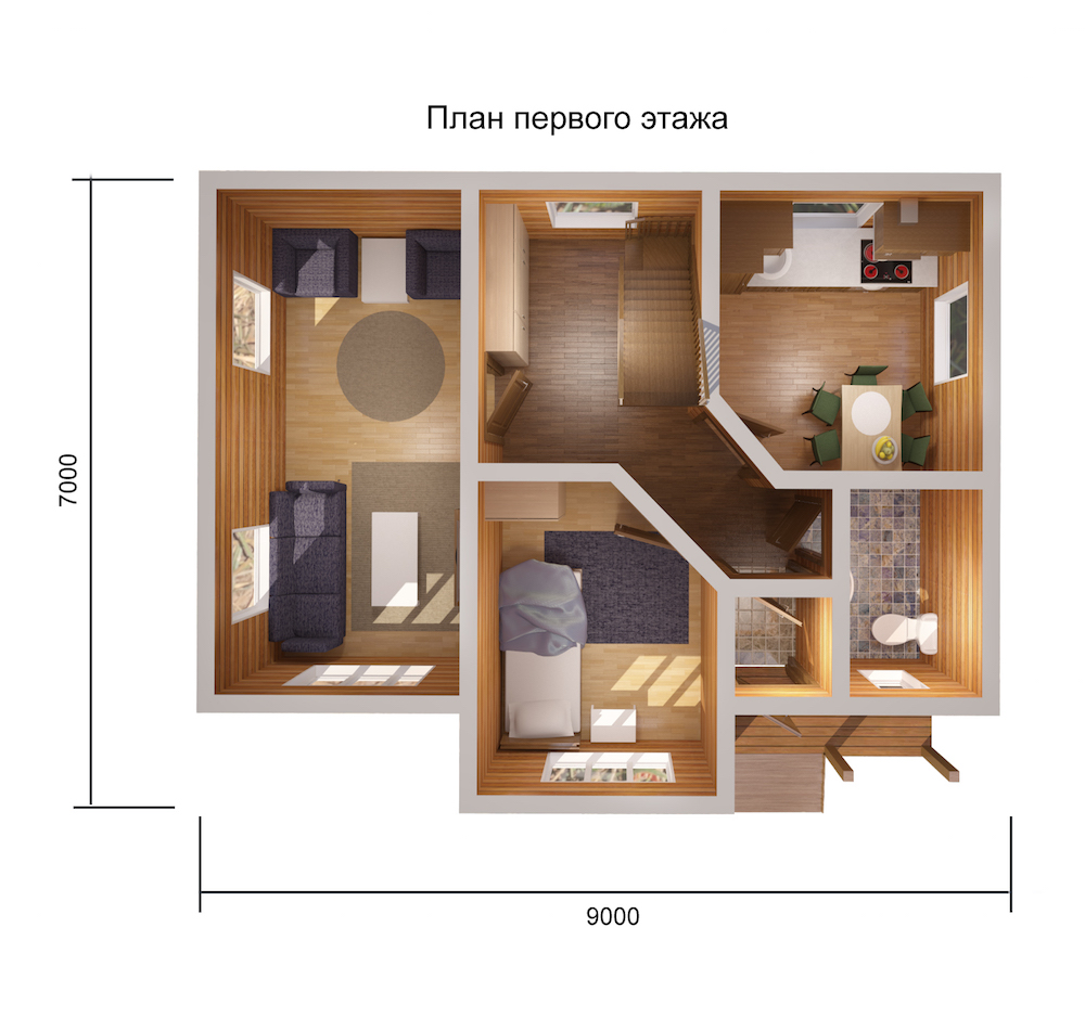 Согласно проекта, ступени клеёные глубиной 300мм; перила, столбы опорные, балясины резные из клеёных материалов.
