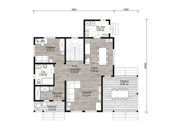 Чистовой пол 1-го этажа: | шпунтованная доска камерной сушки 36 мм, или фанера по обрешетке; |