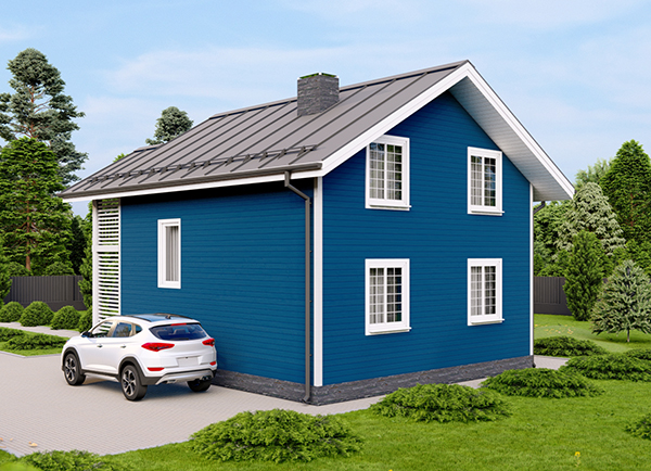 Отделка 1/2 го этажа снаружи: | имитация бруса 16 мм по ветрозащитной мембране Изоспан А и контр обрешетке |